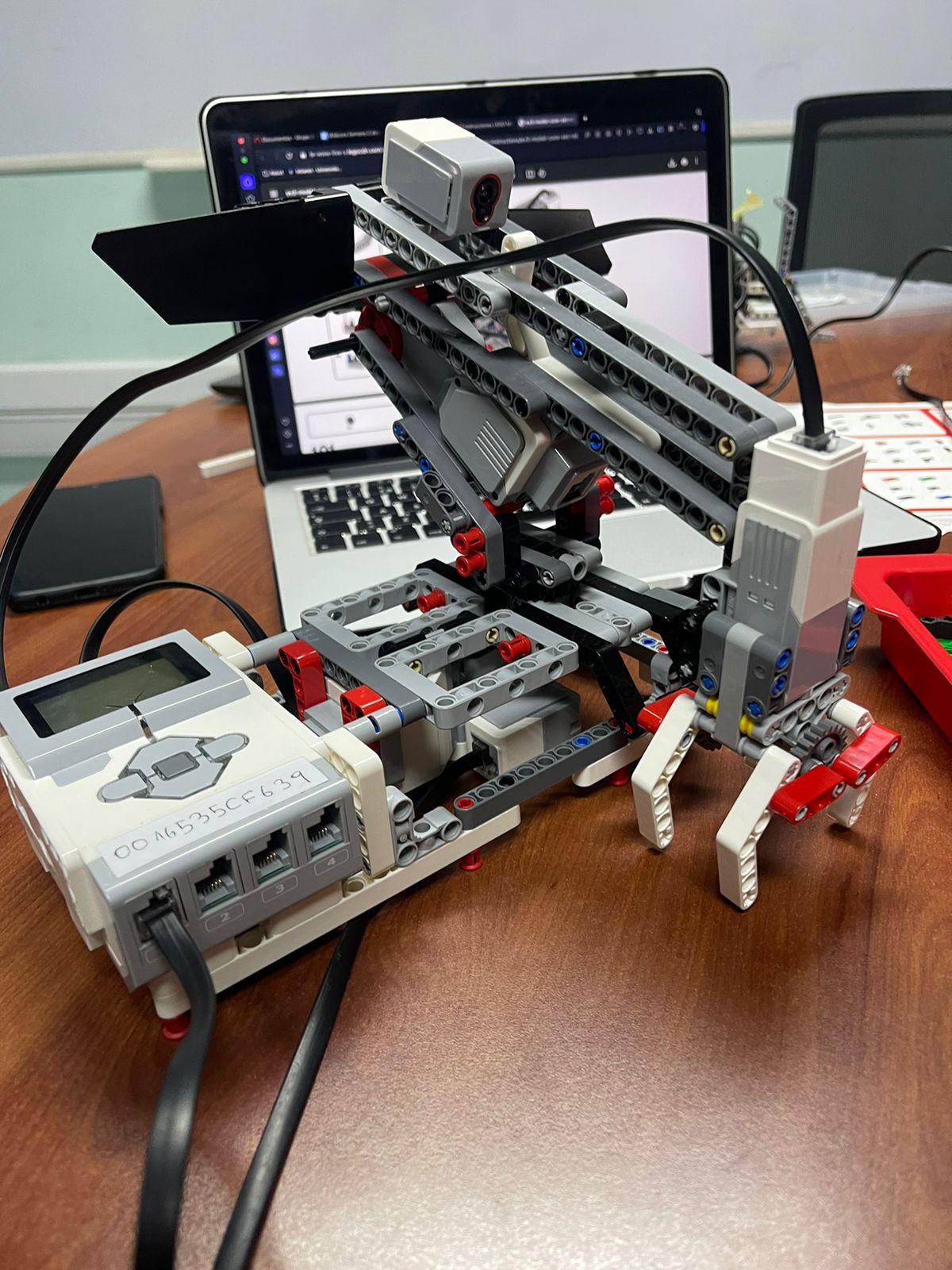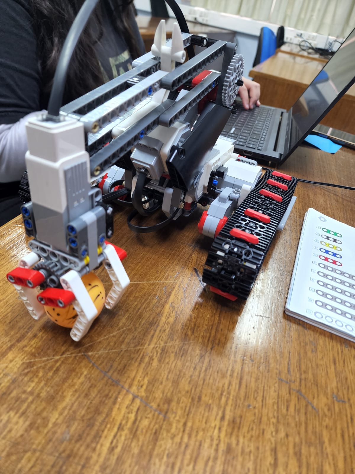 Mientras los codificadores continuaban experimentando con el prototipo inicial, el equipo de ensambladores avanzó con la construcción de una garra mecánica para comenzar a desarrollar un robot que cumpliera con los requerimientos del proyecto. Utilizando una guía en línea del diseño oficial correspondiente al set de piezas que teníamos disponible, lograron ensamblar una estructura más compleja y específica, centrada en el control de agarre y movimiento. Este modelo se armó con fin de llegar a ser la base para el modelo final.