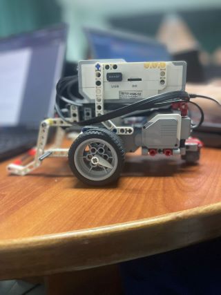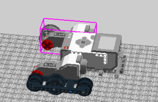 Algo esencial que se tuvo en cuenta es que las ruedas en la parte delantera debían extenderse por fuera del tamaño del Ev3 brick, para prevenir inclinaciones debido al posible peso que la garra pueda sostener, porque podría generarse un eje de torque por la rueda e inclinarse hacia adelante.