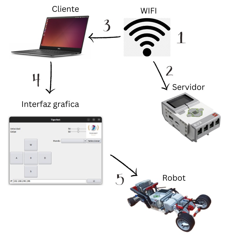 - Servidor: Se podrá conectar a través de la dirección ip para su uso con el robot.