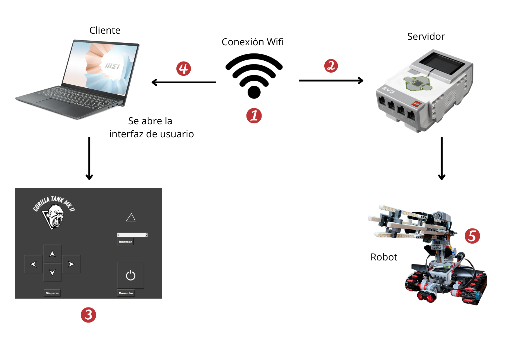 4. La interfaz se conectará al servidor del robot y el usuario podrá controlarlo.