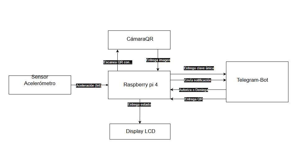 - Ingreso normal: El acelerómetro detecta movimiento, el usuario muestra el QR, la Raspberry valida y desactiva la alerta.