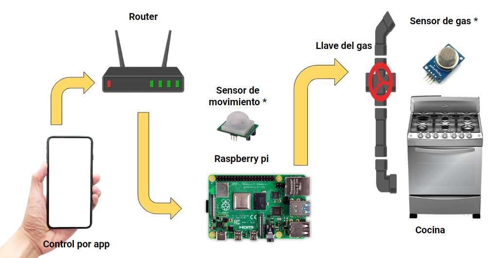 Sensor de gas : Parte del sistema de detección y respuesta. Encargado de detectar fugas de gas en la cocina.
